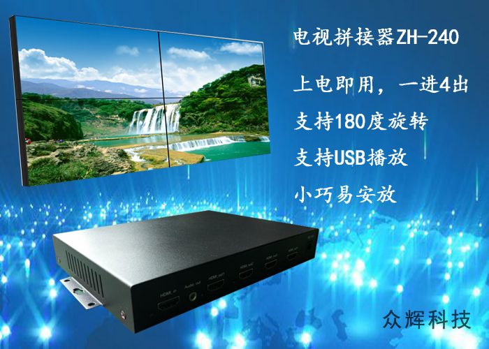 4個HDMI高清接口USB循環(huán)播放 眾輝4電視拼接盒ZH-240