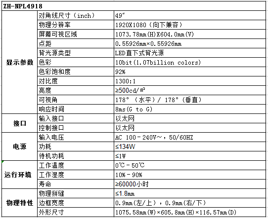 ZH-NPH4918 LG49寸1.8mm拼縫